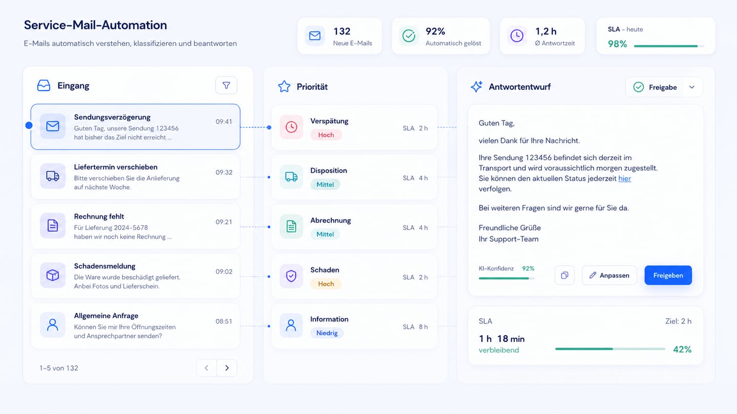 - Handling time per email: 2–4 minutes, totalling 4–6 hours/day/person